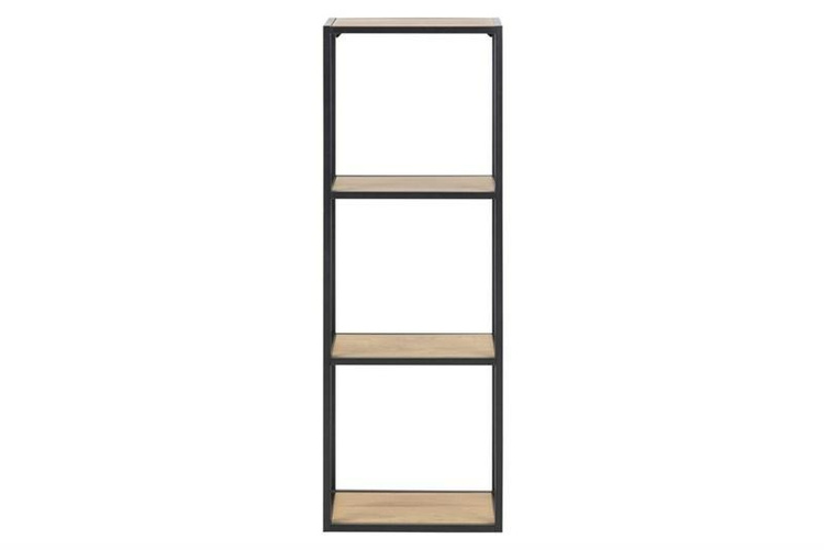 Nowoczesny regał wiszący w stylu industrialnym z serii Seaford to pełna uniwersalnego wdzięku propozycja o niezwykle szerokich możliwościach aranżacyjnych. Świetnie wkomponuje się nie tylko we wnętrza loftowe, ale i skandynawskie, jak i wiele innych aranżacji, które wymykają się jednoznacznym definicjom jednego stylu wystroju wnętrz. Stelaż wykonany został z metalu malowanego proszkowo na kolor czarny, w matowym wykończeniu, półki natomiast wykonane zostały z płyty meblowej w okleinie dębowej (kolor „wild oak”).