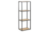 W naszej ofercie dostępne są różne meble z serii Seaford przeznaczone do pomieszczeń o różnym przeznaczeniu i zastosowaniu – tutaj nowoczesny regał wiszący w stylu industrialnym z półkami w okleinie dębowej na czarnym metalowym stelażu.