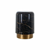 Całość wykonano z wytrzymałego metalu o zdobieniu imitującym marmur w czarnej tonacji oraz zakończono złotym akcentem.