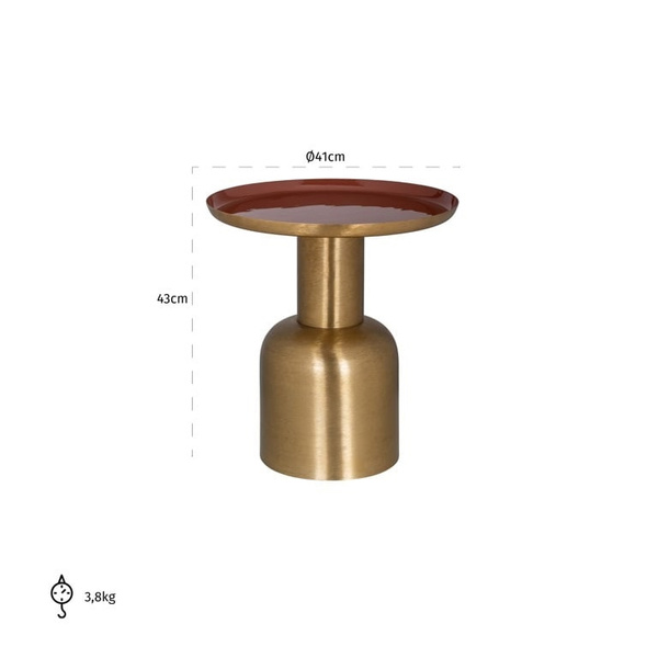 Okrągły blat w bordowym błyszczącym lakierze i podstawa w szczotkowanym złotym kolorze sprawiają, że ten stolik jest wyjątkowy.