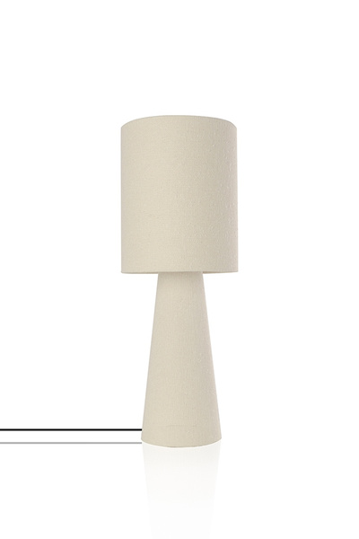 Subtelny klosz i podstawa są pokryte teksturowaną lnianą tkaniną, co nadaje wyjątkowego, naturalnego charakteru i wprowadza ciepłą atmosferę do wnętrza.
