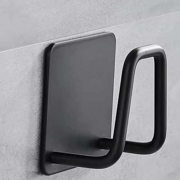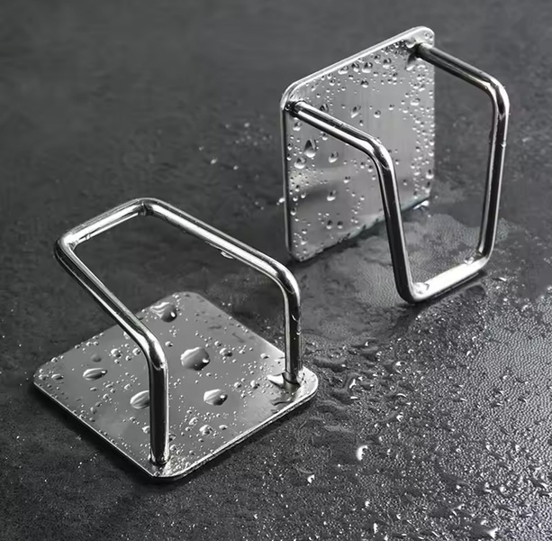 Przedstawiony uchwyt na zmywak to minimalistyczny, metalowy wieszak.