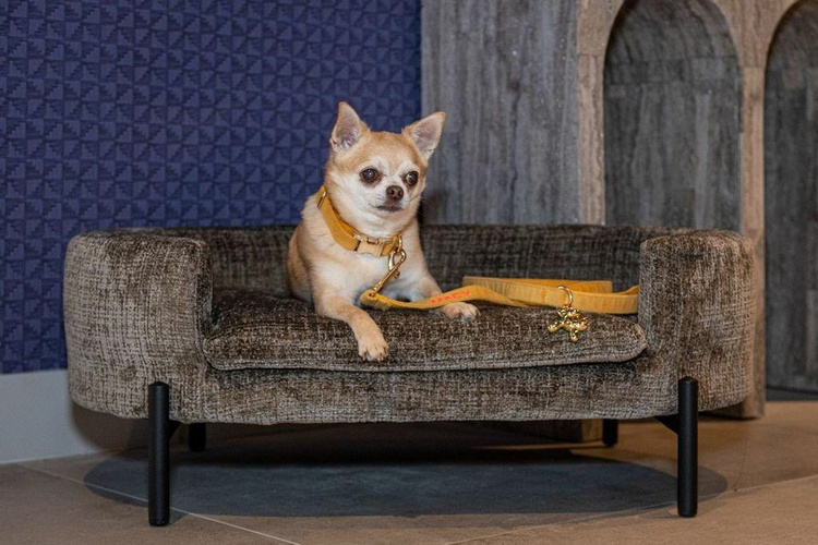 Kolor taupe nadaje legowisku nowoczesny wygląd, a subtelna struktura materiału dodaje mu luksusowego charakteru.