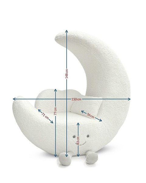 Uroczy i komfortowy fotel w kształcie księżyca, zaprojektowany z myślą o dziecięcych pokojach i przestrzeniach wypoczynkowych.