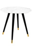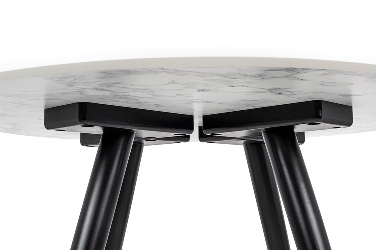 Stół PADRINO 90 biały. Połączenie nowoczesnego designu i ponadczasowej elegancji. Wykonany z wysokiej jakości płyty MDF oraz stali nierdzewnej, zachwyca solidnością i estetycznym wykończeniem. Blat imitujący marmur dodaje wnętrzu luksusowego charakteru, a nogi w kolorze matowej czerni podkreślają jego minimalistyczny, współczesny styl. Znakomicie sprawdzi się w salonach, jadalniach oraz eleganckich biurach. Doskonale odnajdzie się w aranżacjach nowoczesnych, industrialnych i glamour, wprowadzając do przestrzeni harmonię, szyk i subtelny akcent designerski. Wymiary: wys. 77 cm / szer. 90 cm / gł. 90 cm Blat: śr. 90 cm / gr. 2 cm Rozstaw nóg: szer. 61 / gł. 61 cm / wys. 77 cm Sposób wysyłki: paleta.