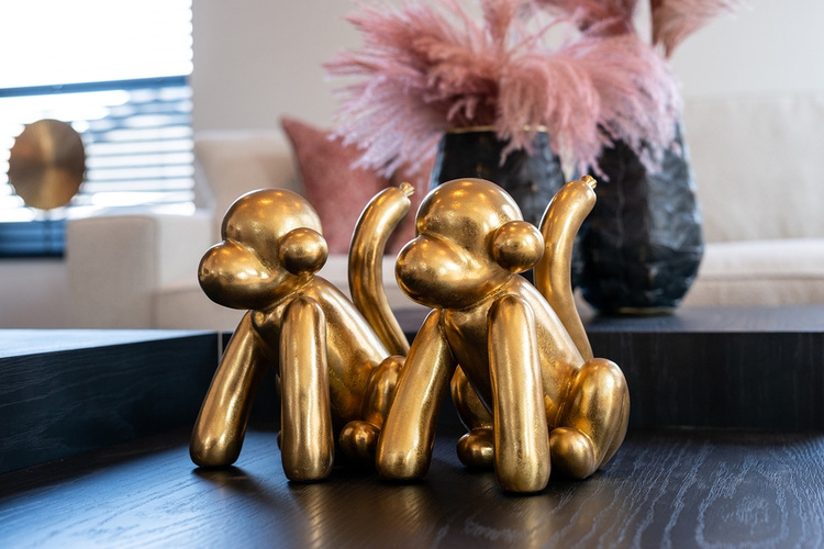 Figurka Monkey marki Richmond Interiors imituje małpkę w eleganckim, bogatym złotym kolorze.