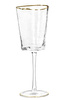 KARE komplet kieliszków do wina HOMMAGE 400 ml. Nowoczesna propozycja od marki Kare Design z pewnością odnajdzie praktyczne i ozdobne zastosowanie podczas każdej uroczystości. Przezroczyste naczynie zostało ręcznie wykonane w całości ze szkła. Złote akcenty i wyjątkowe wykończenie dodają całości niezwykłej elegancji. Nie należy myć w zmywarce. Zestaw zawiera 4 sztuki produktu. *W kieliszku mogą wystąpić pęcherzyki powietrza, które są naturalnym efektem powstałym podczas ręcznej obróbki szkła. Wymiary: wys. 23,5 cm / szer. 9,5 cm / gł. 9,5 cm Waga: 0,3 kg Sposób wysyłki: Paczka.