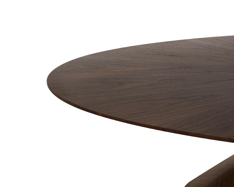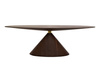 Owalny blat w połączeniu ze stożkowatą podstawą tworzy harmonijną, nowoczesną formę.