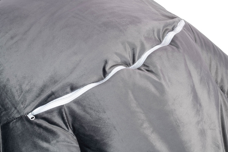 Korpus tapicerowany ekoskórą w kolorze czarnym. Miękka poducha obszyta aksamitną welurową tkaniną w kolorze ciemnoszarym