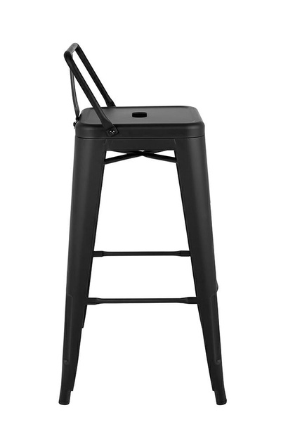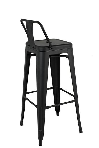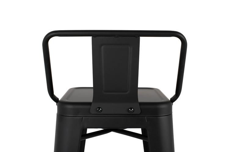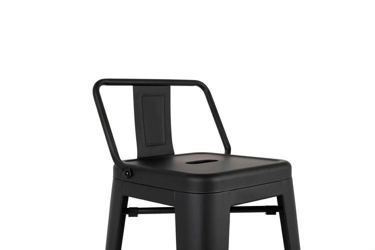 Krzesło barowe TOWER BACK czarne. Ponadczasowy, uniwersalny hoker z oparciem uzupełni zarówno klasyczne, jak i loftowe oraz industrialne wnętrza. Wykonany w całości z lakierowanego metalu w czarnym, satynowym kolorze jest niezwykle stylowy i praktyczny. Odnajdzie swoje zastosowanie w zaciszu domowym i przestrzeniach publicznych. Wymiary: wys. 84 cm / szer. 40 cm / gł. 40 cm Wysokość do krawędzi siedziska: 66 cm Siedzisko: szer. 30 cm / gł. 30 cm Oparcie: wys. 18 cm / szer. 37 cm Rozstaw nóg: szer. przód 40 cm / szer. tył 40 cm Wysokość do podnóżka: 23 cm Szerokość do podnóżka: 27 cm Możliwość sztaplowania: tak Wymiary opakowania: 45 cm / 44 cm / 116 cm.