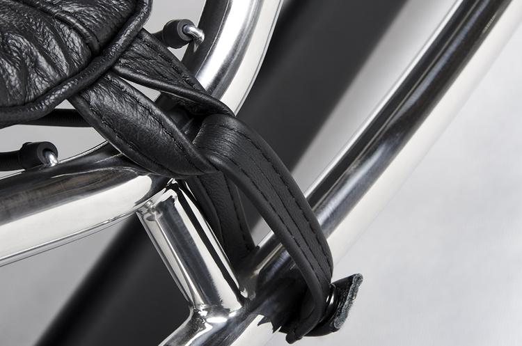 Siedzisko, oparcie, zagłówek i pasy wykonane zostały z naturalnej włoskiej skóry.