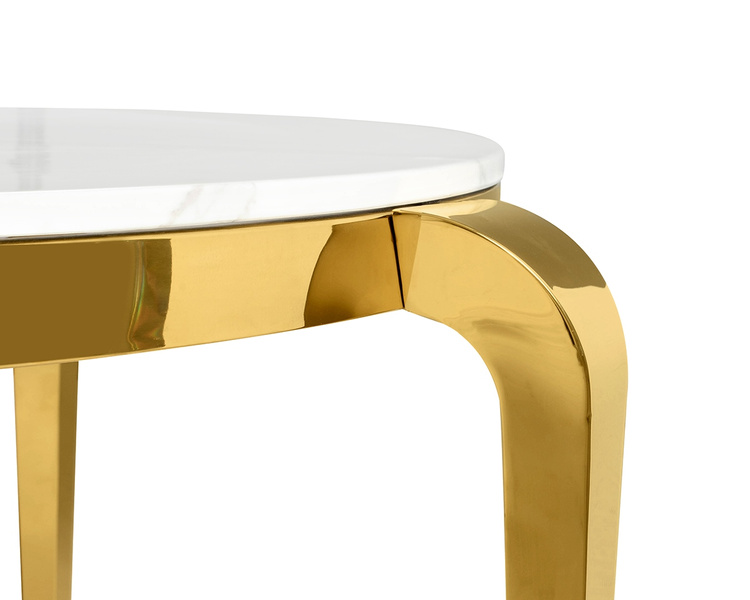 Stabilna podstawa ze stali, wykończona w luksusowym, złotym odcieniu, dodaje całości blasku i wytworności.