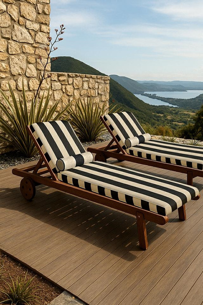 Zestaw ogrodowy AZURE leżak z materacem i poduszką biało-czarny.