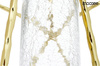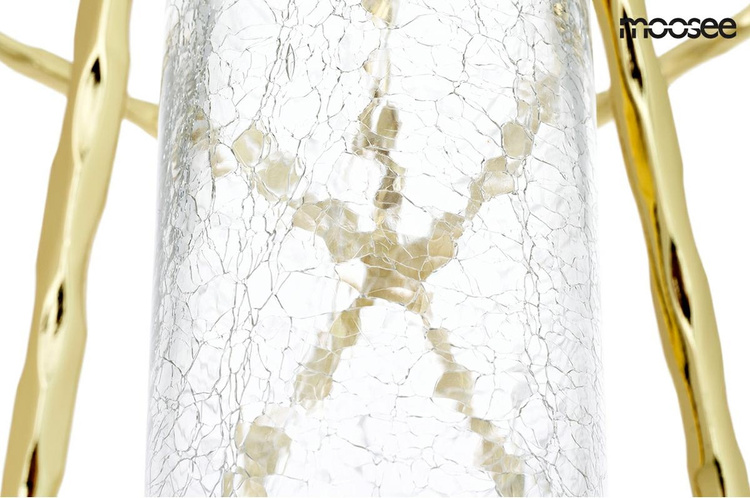 Geometryczną konstrukcję wykonano z połączenia metalu w kolorze złotym i szklanego klosza.