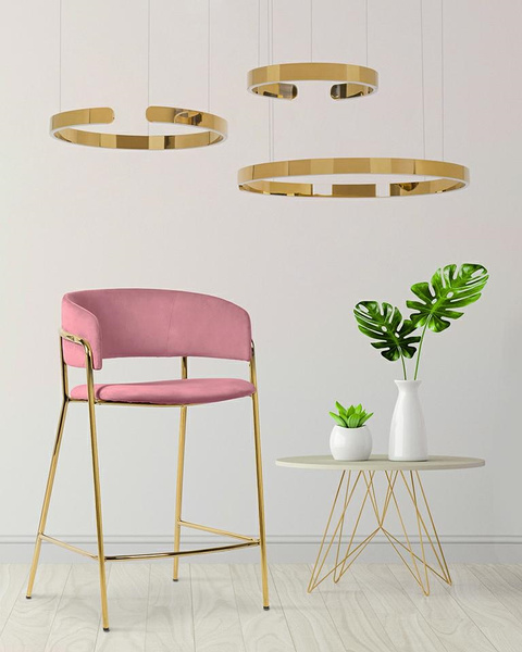 Mocna, stabilna konstrukcja została wykonana z metalu w złotym, błyszczącym kolorze.
