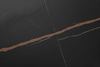 Czarny ceramiczny blat imitujący marmur, emanuje subtelną elegancją i harmonijnie współgra oraz kontrastuje z imponującą podstawą wykonaną ze stali nierdzewnej