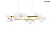 Lampa, która zachwyca elegancją i nowoczesnym charakterem. Złota, owalna konstrukcja pięknie współgra z mlecznymi kulami, tworząc kompozycję, która subtelnie rozprasza światło i nadaje wnętrzu przytulnego blasku. Zawieszone na cienkich, regulowanych przewodach klosze tworzą wrażenie lekkości i wyrafinowania.