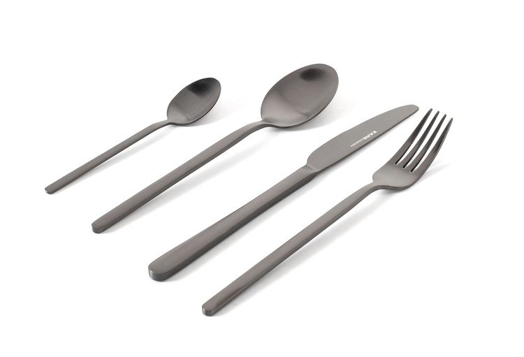 Nowoczesne, stylowe sztućce wykończone w eleganckim, matowo-czarnym kolorze.