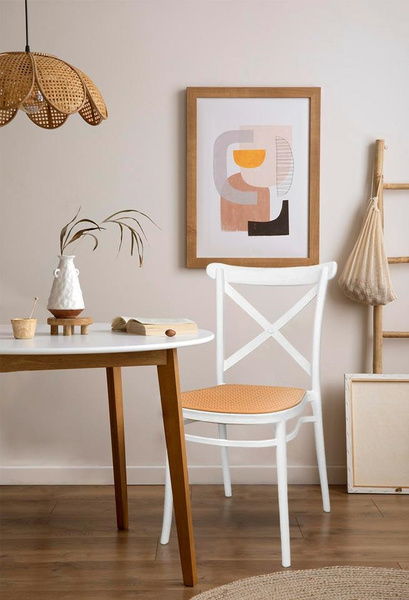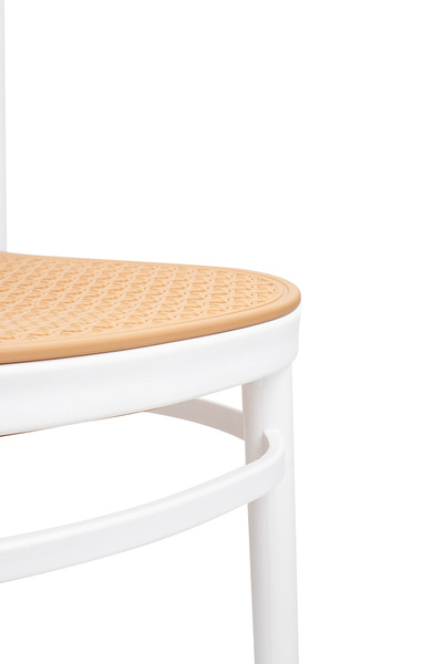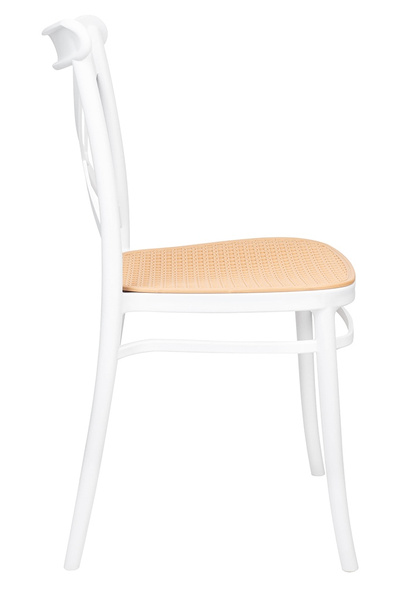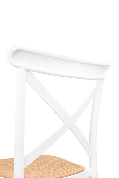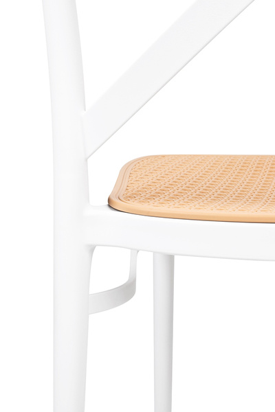 Zaprojektowane na wzór klasycznego krzesła z ogrodowym akcentem. Ażurowe siedzisko przypominające rattan i skrzyżowane oparcie powodują,