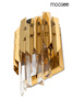 MOOSEE lampa ścienna MAJESTIC złota. Niezwykle luksusowe i eleganckie oświetlenie nawiązujące do pałacowego stylu. Innowacyjnym zdobieniem jest najwyższa warstwa wykonana z połyskującej stali w kolorze złotym. Kaskadowo nachodzące na siebie warstwy kryształowych sopli sprawiają, że strumień światła rozprasza się w unikalny sposób. Pomimo kompaktowych wymiarów lampa robi imponujące wrażenie. Światło: 1 x E14 max. 40 W (brak w zestawie) Oprawa: wys. 27 cm / szer. 19 cm / gł. 10 cm Mocowanie: wys. 18 cm / szer. 14 cm / gł. 2,5 cm Montaż: instalacja ścienna Waga netto: 1,5 kg Wymiary opakowania: 34 cm / 25 cm / 15 cm.