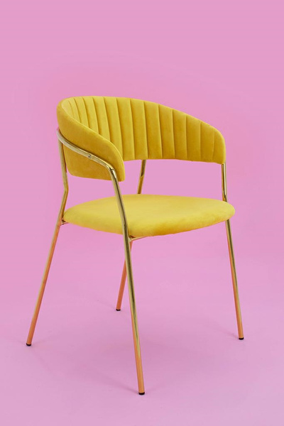Krzesło MARGO żółte - welur, podstawa złota.