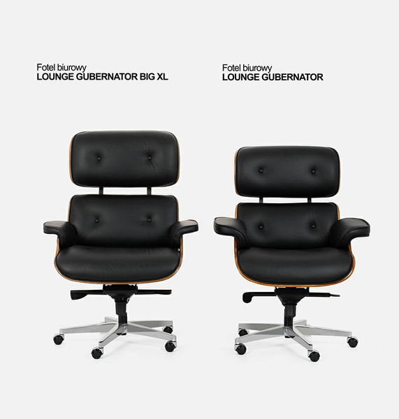 • Fotel biurowy LOUNGE GUBERNATOR BIG XL czarny - sklejka orzech, skóra naturalna, stal polerowana
