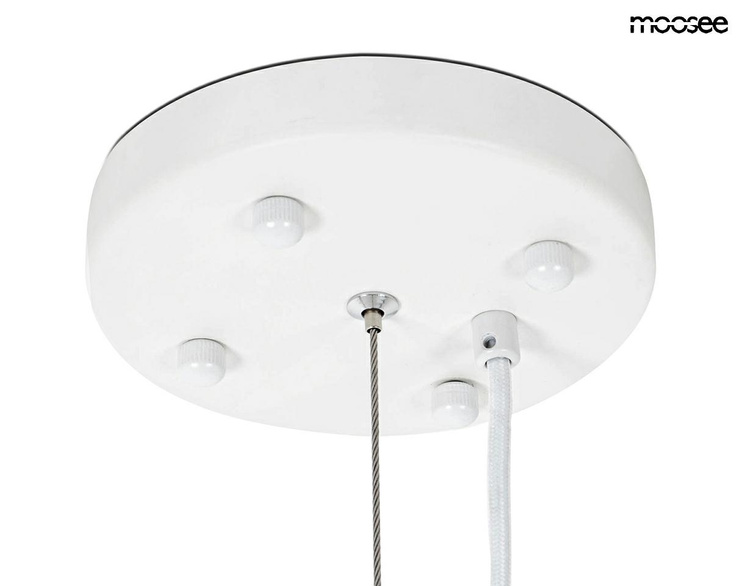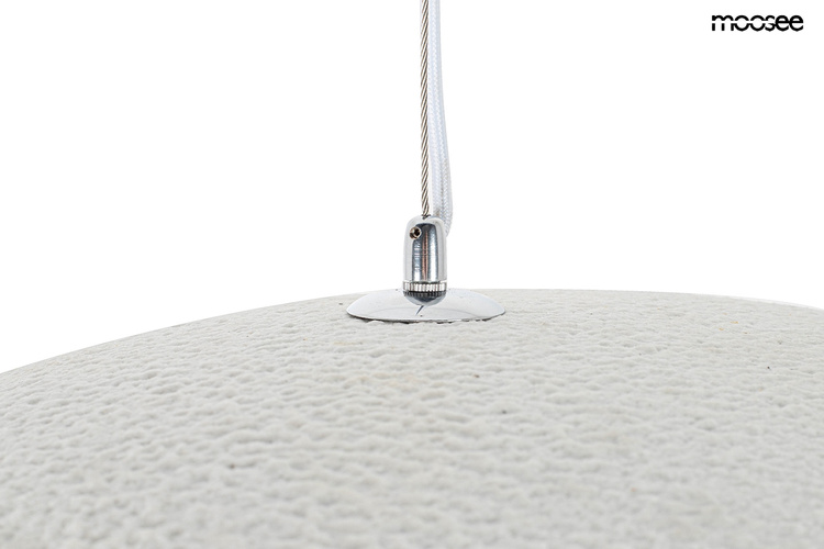 MOOSEE lampa wisząca NEST 120 biała. Lampa inspirowana kulistym obłokiem, przeznaczona dla miłośników designu. Nieregularny kształt wykonany z żywicy swoją strukturą przypomina kamień. Zawieszona na białym przewodzie, unosząc się, wprowadza w melancholijny nastrój. Niezwykły efekt powstaje przy kaskadowym zawieszeniu kolekcji Nest w różnych rozmiarach. Światło: E27 max. 40 W (brak w zestawie) Oprawa: wys. 205 cm / szer. 120 cm / gł. 55 cm Klosz: wys. 35 cm / szer. 120 cm / gł. 55 cm Mocowanie: śr. 12 cm / wys. 3 cm Przewód: 170 cm Waga netto: 20 kg Wymiary opakowania: 127 cm / 68 cm / 97 cm.