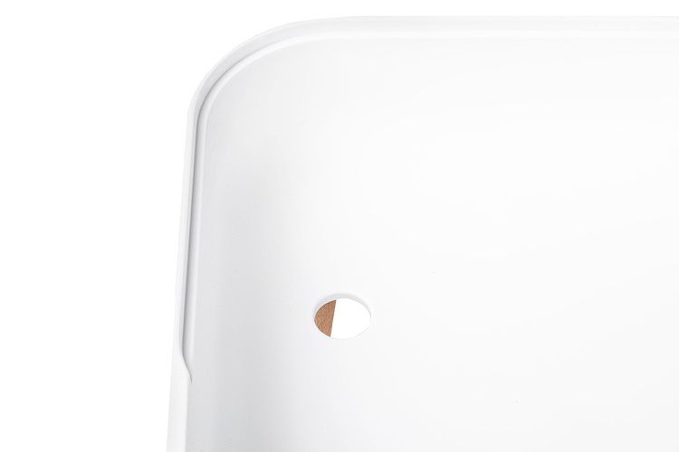 Blat z praktyczną półką wykonany został z polipropylenu w kolorze białym z dodatkowym miejscem na przeprowadzenie przewodu,