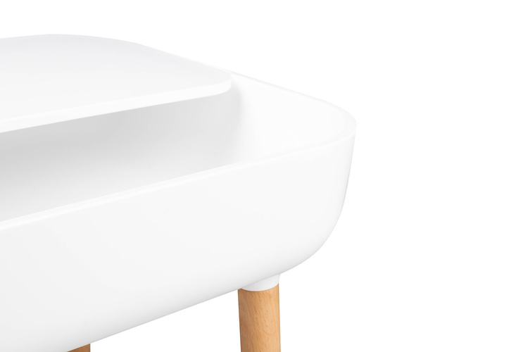 co znacznie ułatwia organizację. Nogi z drewna bukowego sprawiają, że stolik świetnie odnajdzie się w stylu skandynawskim.