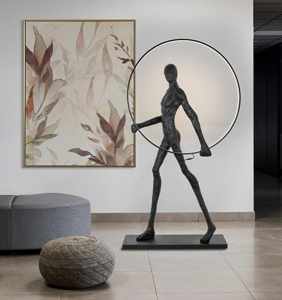 Wykonana z włókna szklanego, stali oraz aluminium. Czarny kolor i sylwetka człowieka, tworzy nowoczesną dekorację niemal każdej przestrzeni.