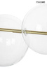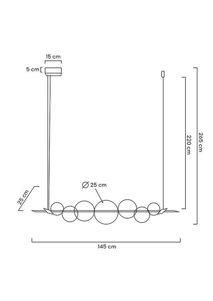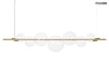 Kompozycja okrągłych kloszy w różnych rozmiarach zamocowanych na złotej konstrukcji delikatnym światłem udekoruje przestrzeń.