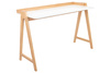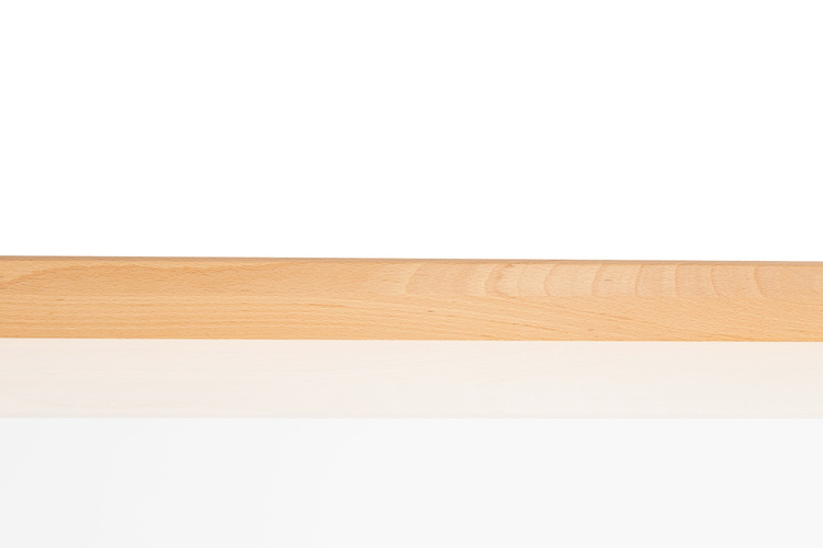 Blat biurka wykonany został z płyty meblowej malowanej na kolor biały, natomiast nogi biurka wykonane są z drewna bukowego.