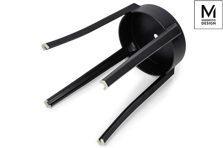 Stołek w całości wykonany jest z polipropylenu w kolorze czarnym matowym.