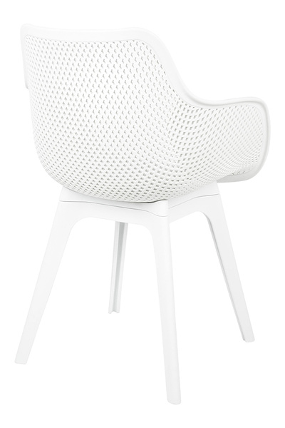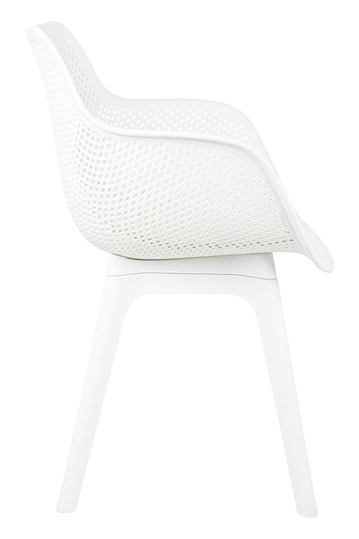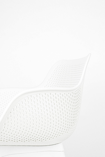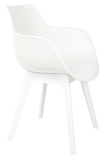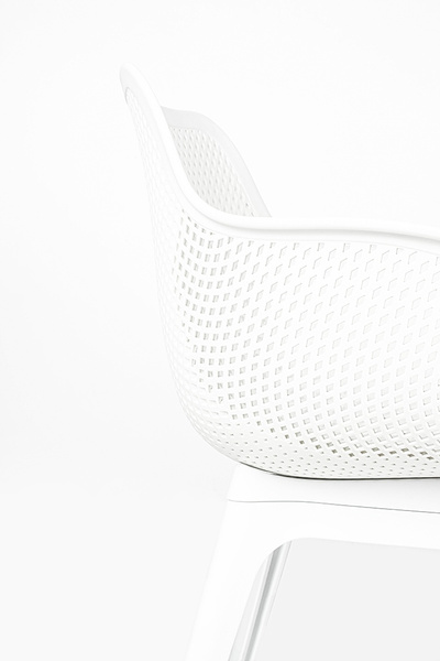 Krzesło LANDI białe - polipropylen. Wyjątkowy design połączony z funkcjonalnością. W całości wykonane z polipropylenu, tworzywa, które łączy w sobie lekkość i wyjątkową trwałość. Ażurowa forma siedziska nadaje lekkości i nowoczesnego charakteru, sprawiając, że krzesło prezentuje się elegancko i stylowo w każdej przestrzeni. Biały kolor wprowadza świeżość i lekkości, sprawiając, że doskonale rozjaśnia przestrzeń. Wytrzymałe wykonanie zapewnia bezpieczeństwo i komfort użytkowania do 130 kg. Idealnie sprawdza się zarówno wewnątrz pomieszczeń, jak i na zewnątrz, zachowując swój wygląd mimo zmiennych warunków pogodowych. Wymiary: wys. 83 cm / szer. 57 cm / gł. 55,5 cm Wysokość do krawędzi siedziska: 44 cm Siedzisko: szer. 43 cm / gł. 43 cm Oparcie: wys. 40 cm / szer. 42 cm Podłokietniki: dł. 30 cm / szer. 2 cm Rozstaw nóg: przód szer. 45 cm / tył szer. 45 cm / gł. 45 cm Możliwość sztaplowania: tak Wymiary opakowania: 64 cm / 60 cm / 65 cm.