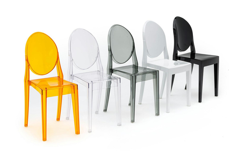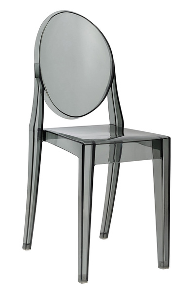 Krzesło Victoria w całości wykonane zostało z dymionego poliwęglanu. Dzięki temu, optycznie zabiera mniej przestrzeni.