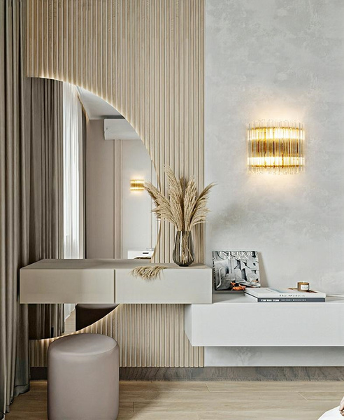 Każdy z nich jest stylowo wykończony i zamontowany na metalowym stelażu w kolorze złotym,