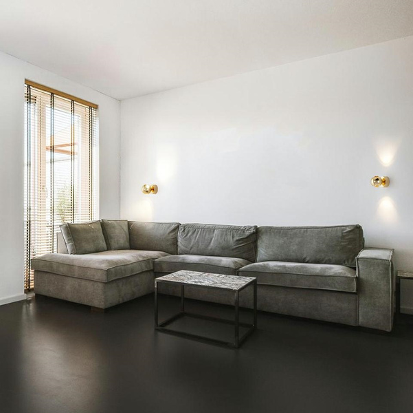 Lampa ścienna Eos została wykonana ze stali oraz szkła i wykończona w pięknej złotej kolorystyce.