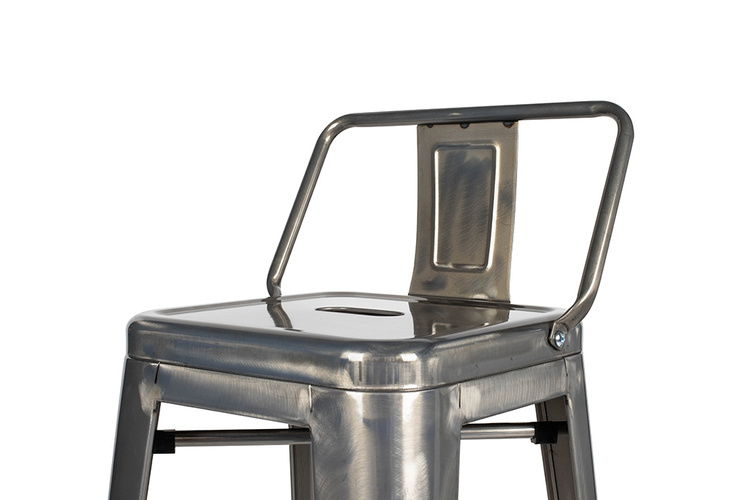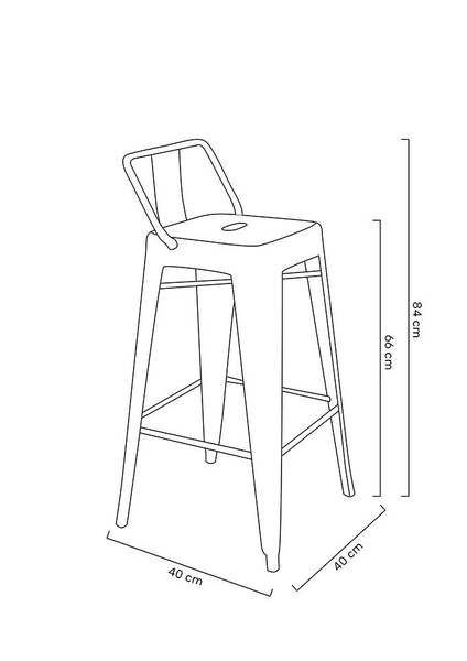 Krzesło barowe TOWER BACK metal. Ponadczasowy, uniwersalny hoker z oparciem uzupełni zarówno klasyczne, jak i loftowe oraz industrialne wnętrza. Wykonany w całości z lakierowanego metalu jest niezwykle stylowy i praktyczny. Odnajdzie swoje zastosowanie w zaciszu domowym i przestrzeniach publicznych. Wymiary: wys. 84 cm / szer. 40 cm / gł. 40 cm Wysokość do krawędzi siedziska: 66 cm Siedzisko: szer. 30 cm / gł. 30 cm Oparcie: wys. 18 cm / szer. 37 cm Rozstaw nóg: szer. przód 40 cm / szer. tył 40 cm Wysokość do podnóżka: 23 cm Szerokość do podnóżka: 27 cm Możliwość sztaplowania: tak Wymiary opakowania: 45 cm / 44 cm / 116 cm.