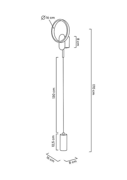 Okrągły, górny klosz posiada wbudowane źródło światła. Dolna cześć lampy posiada mocowanie na żarówkę
