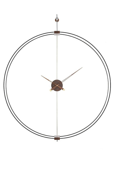 Obręcz została wykonana ze stali, a drewniane wskazówki oraz mosiężne elementy nadają zegarowi designerskiego stylu.
