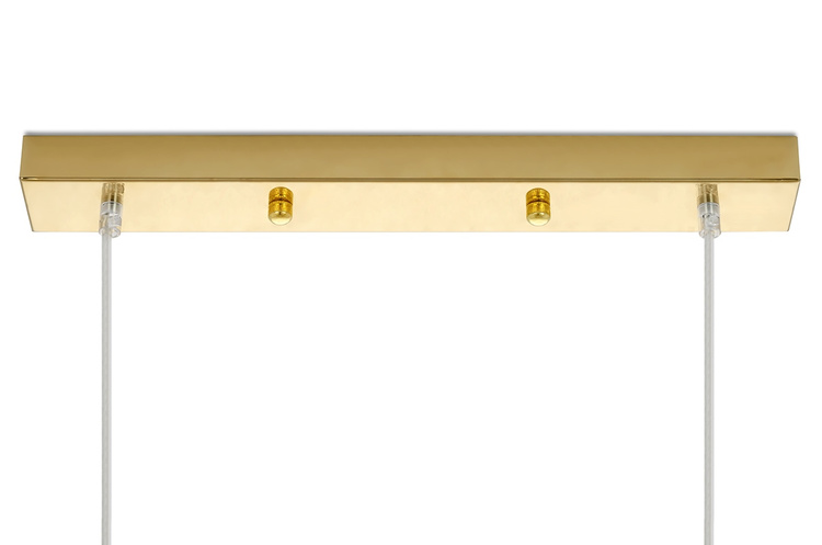 Konstrukcja lampy wykonana została z metalu w złotym, błyszczącym kolorze.
