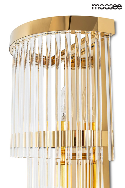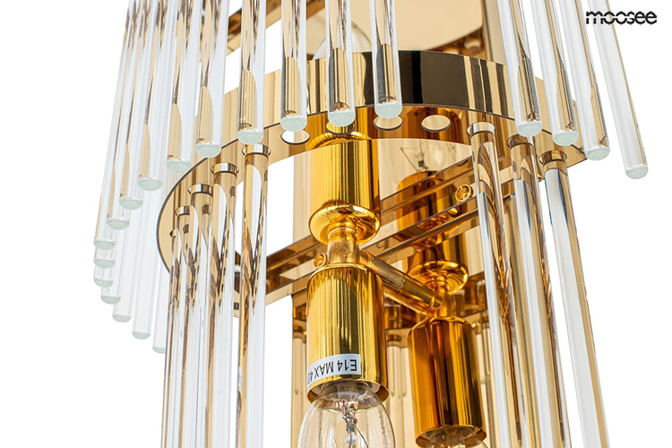 Nowoczesna oprawa w stylu glamour została wykonana z połączenia szkła oraz stali nierdzewnej w złotym kolorze.