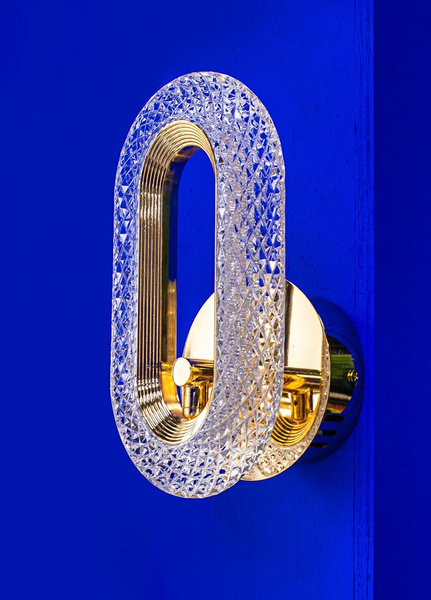 Oprawa została wykonana z aluminium w złotym kolorze z przewagą błyszczących kryształów.