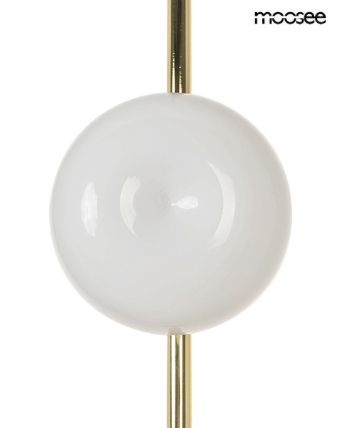 Minimalistyczny design i złote wykończenie wnosi do wnętrza luksusowy akcent, który doskonale współgra z różnorodnymi aranżacjami – od klasycznych po współczesne. Klosze w formie kul z mlecznego szkła równomiernie rozpraszają światło, tworząc przytulną atmosferę. Idealnie sprawdzi się w salonie, jadalni lub sypialni.