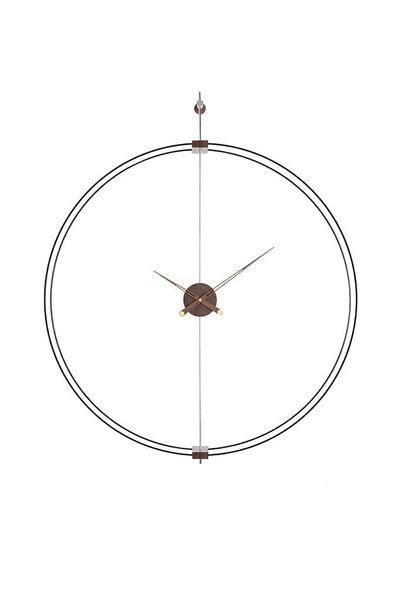 Obręcz została wykonana ze stali, a drewniane wskazówki oraz mosiężne elementy nadają zegarowi designerskiego stylu.