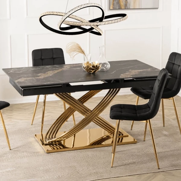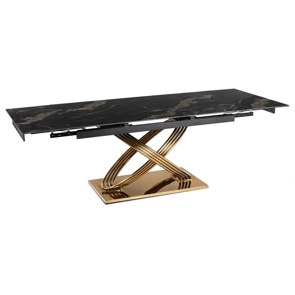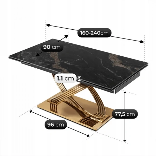 Stół Rozkładany IBIZA 160-240 cm Czarny Marmur/Złoty