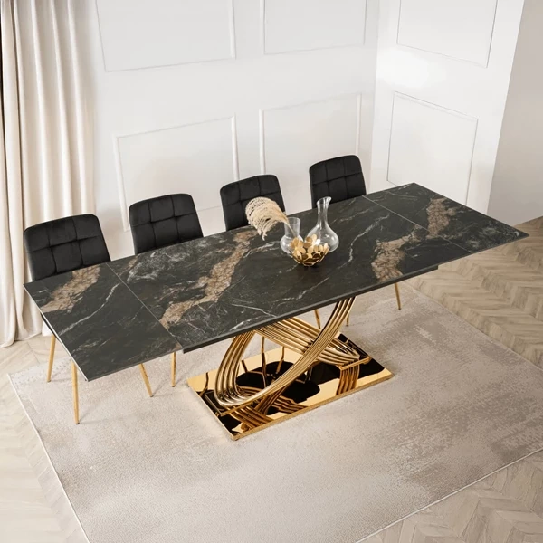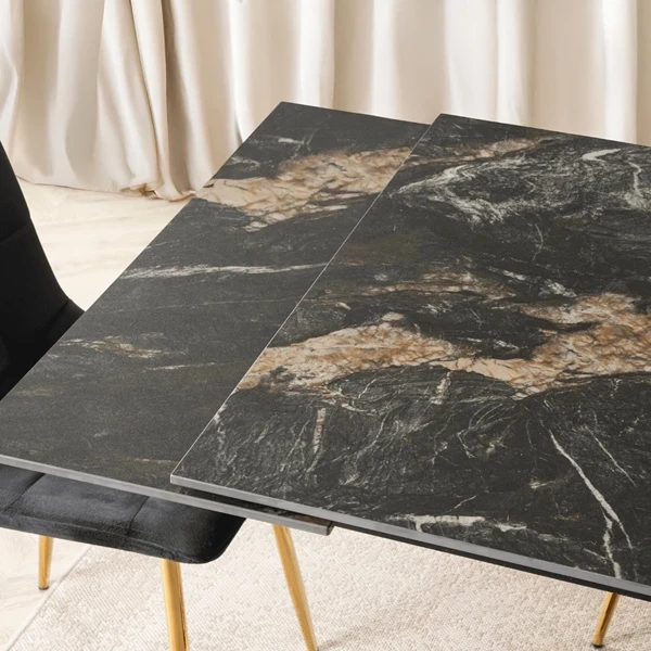 • Stół Rozkładany IBIZA 160-240 cm Czarny Marmur/Złoty