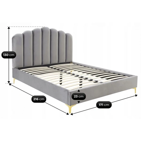 Łóżko 160x200 GEMINI Popiel Welurowe Z Pojemnikiem