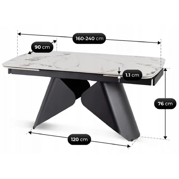 Maksymalna długość stołu po rozłożeniu: