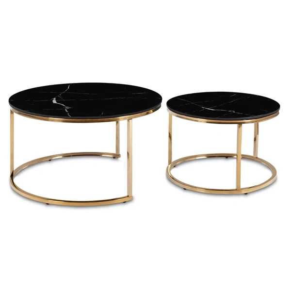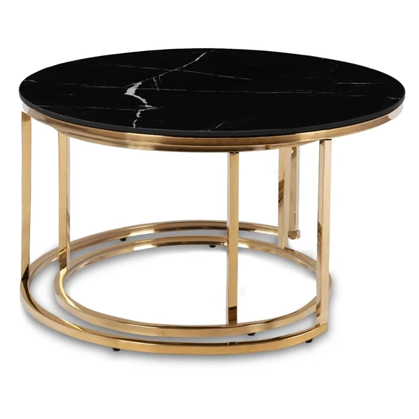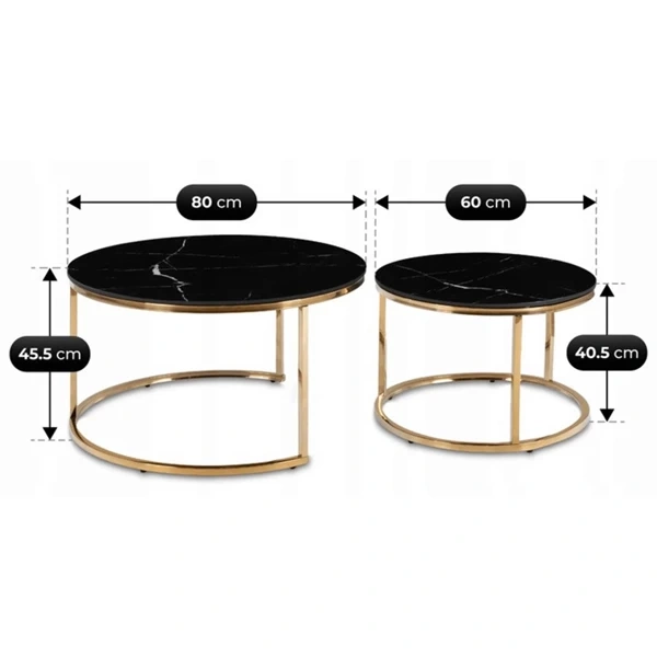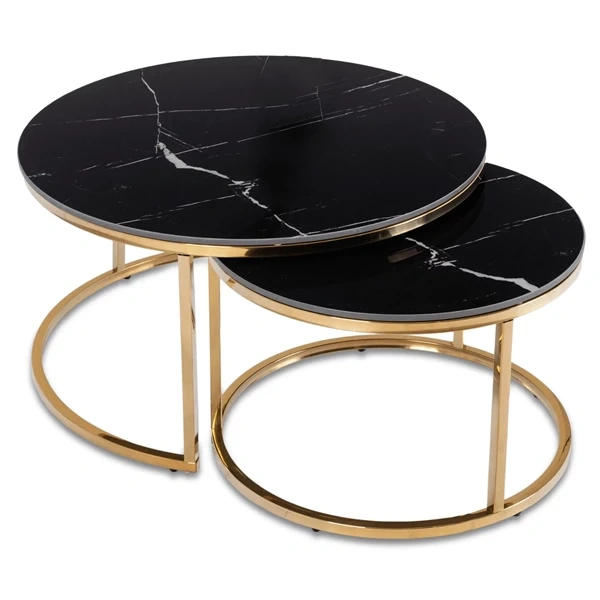 Zestaw Stolików Ceramicznych MILANO Czarny Marmur/Złoty
